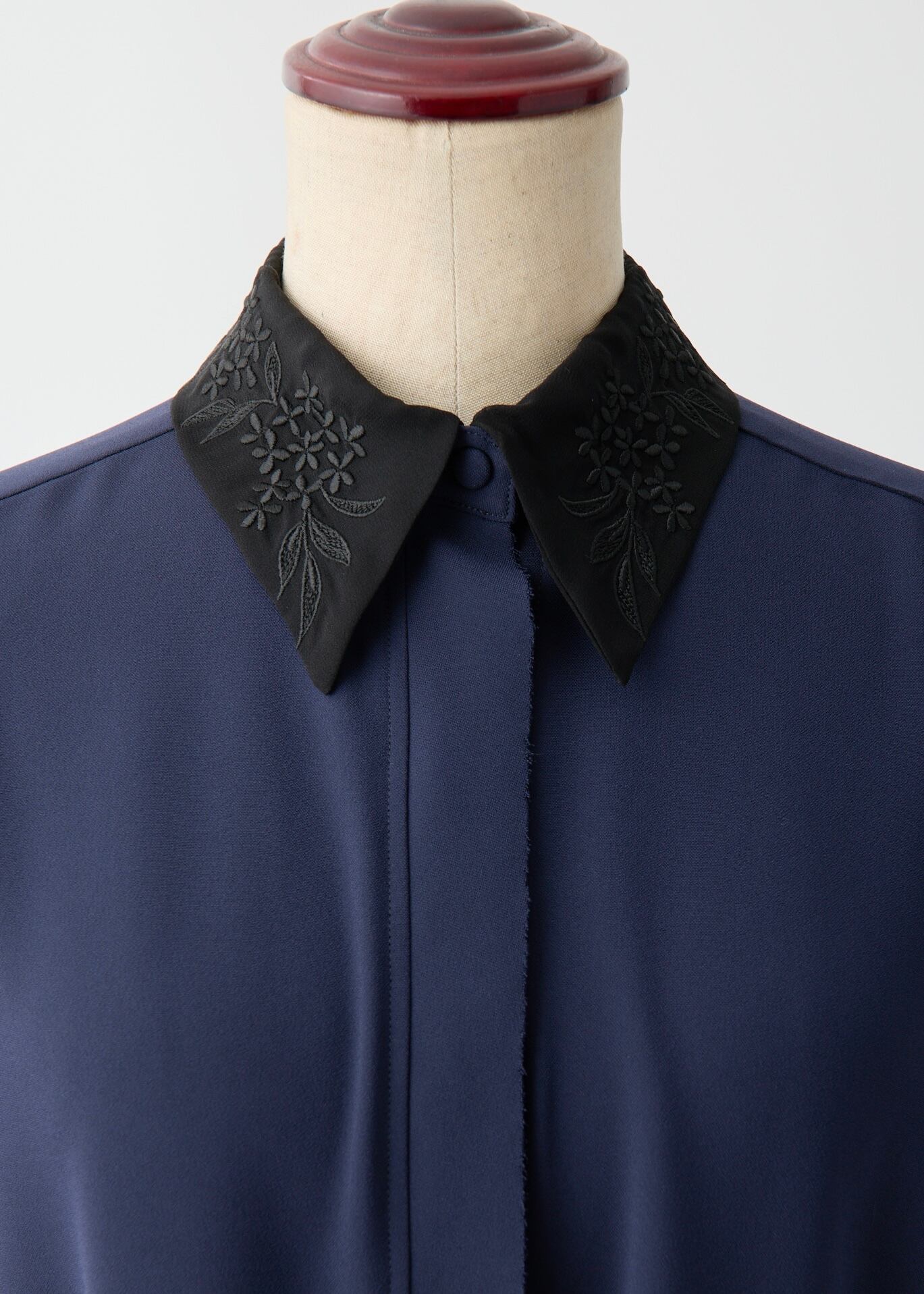 ネイビーとブラックには、いずれもブラック×ホワイト刺繍の衿が付属します。